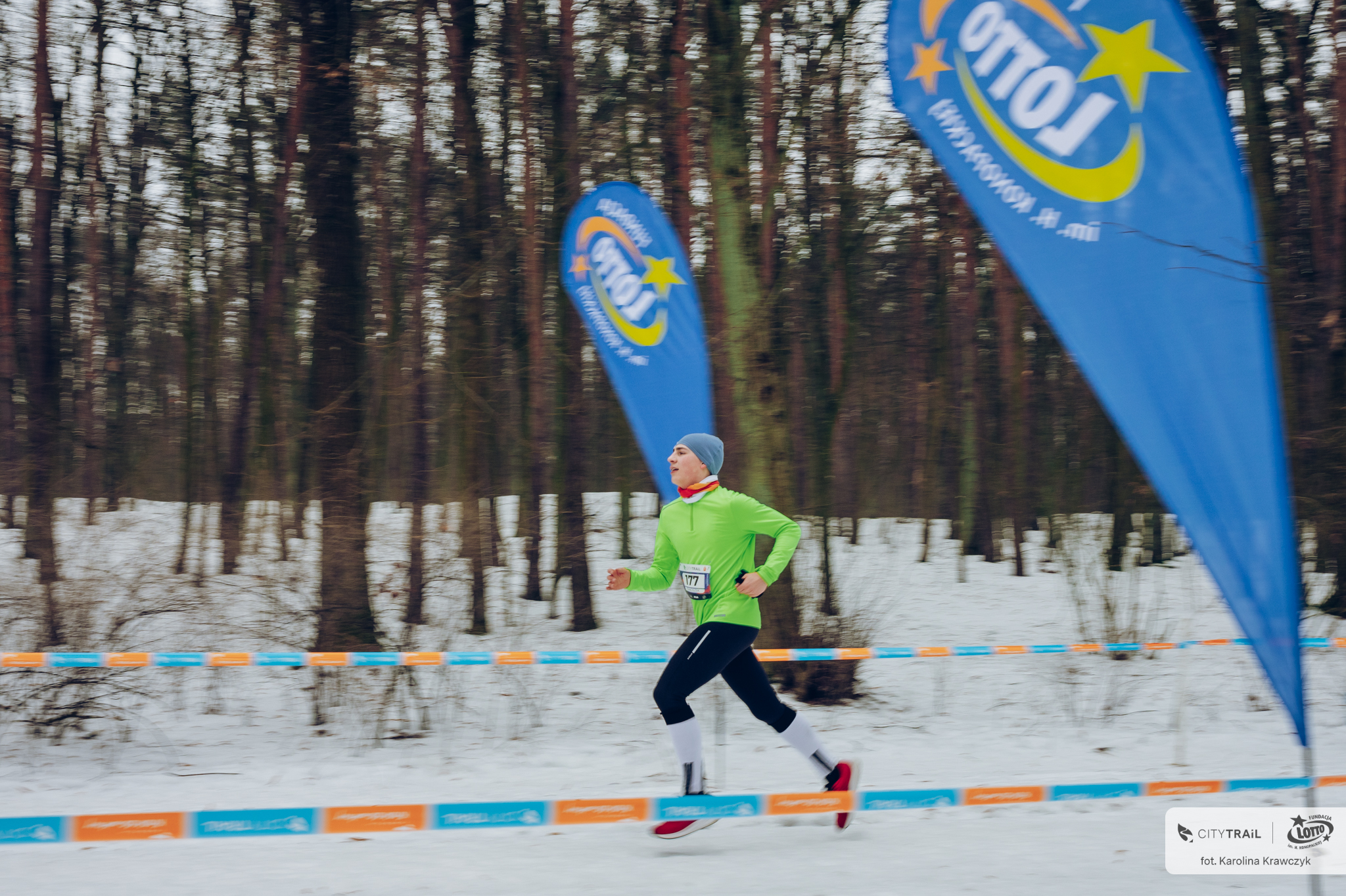 Tegoroczna zima dość mocno testuje motywację biegaczy, którzy stawiają na aktywność na zewnątrz. Uczestnicy dzisiejszego (14 lutego) biegu CITY TRAIL z Fundacją LOTTO pokazali jednak charaktery! Blisko pół tysiąca osób pobiegło na 5-kilometrowej, pokrytej zmrożonym śniegiem trasie w Lesie Młociny. Wielkie brawa należą się także dla młodszych sportowców, którzy startowali w biegach dla dzieci i młodzieży.